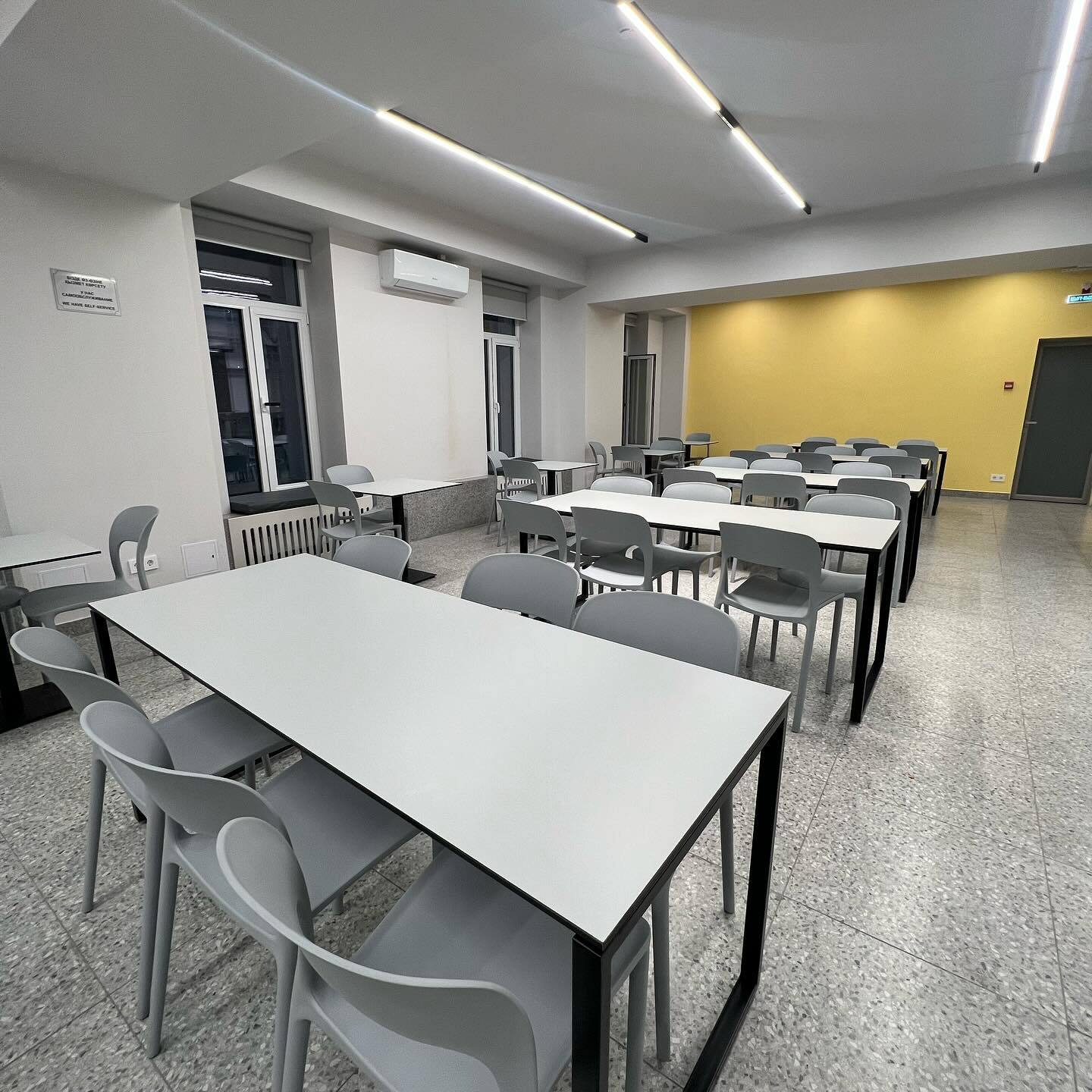 Interior Plus FunderMax был прицельно разработан для этих целей. Специальная защитная поверхность предназначена для использования как раз в таких помещениях высокой проходимости : школах, больницах и предприятиях общепита.