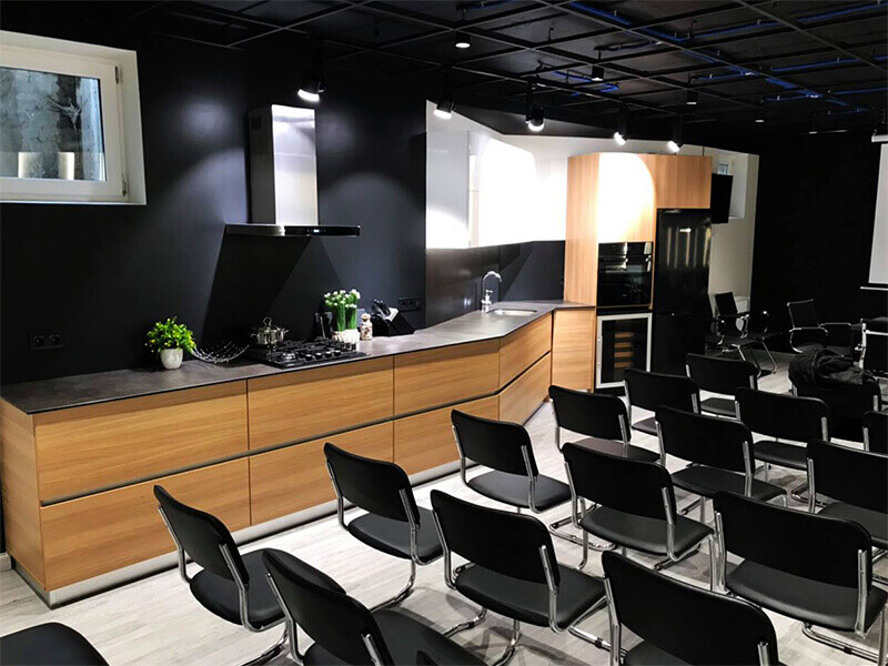 Interior Plus FunderMax был прицельно разработан для этих целей. Специальная защитная поверхность предназначена для использования как раз в таких помещениях высокой проходимости : школах, больницах и предприятиях общепита.