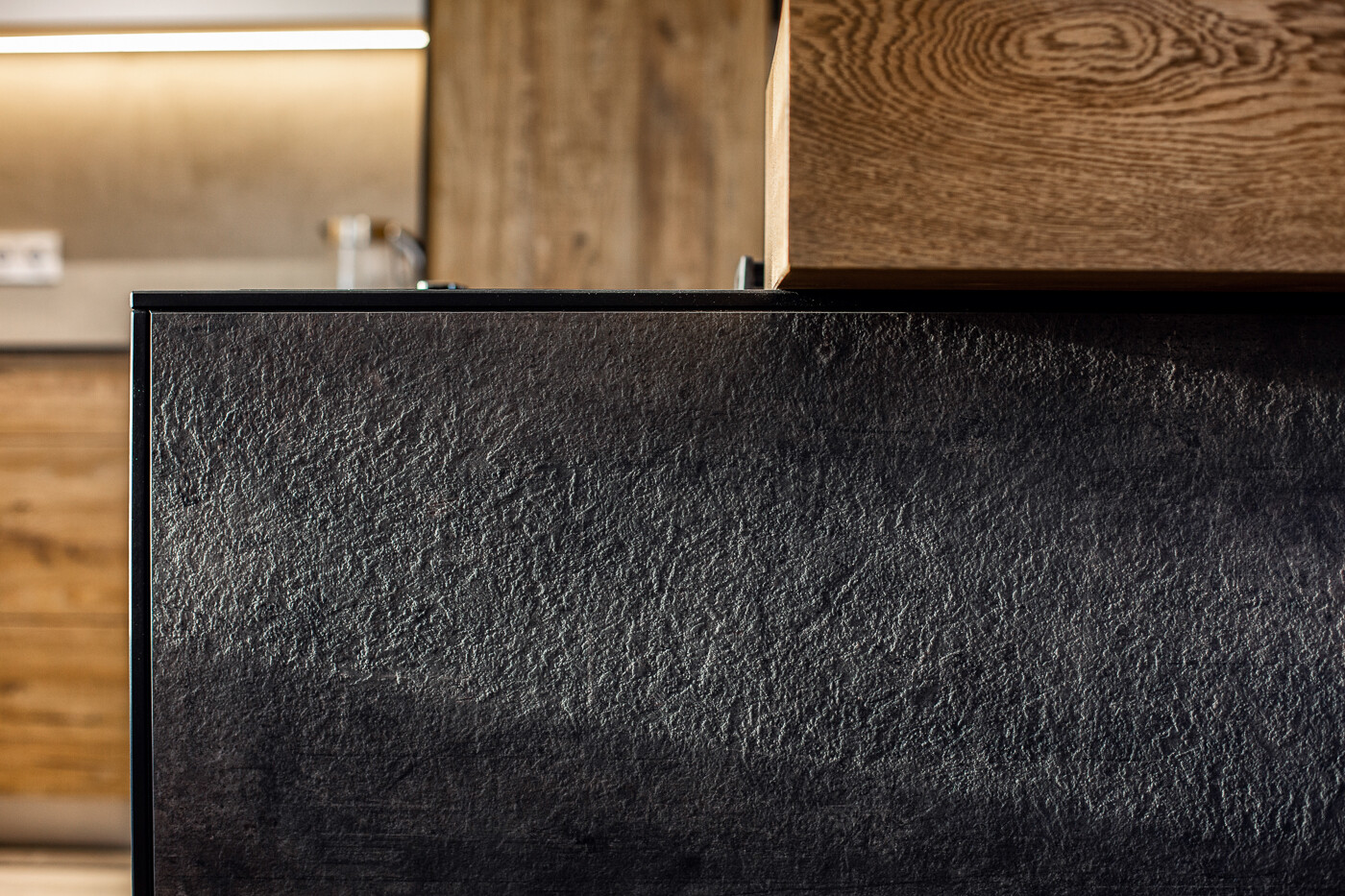 Панель Saxum имеет ярко выраженные черты фактуры камня. Эстетика природного камня передана настолько убедительно, что не возникает никаких сомнений в том, что вид столешницы отвечает требованиям современного дизайна.